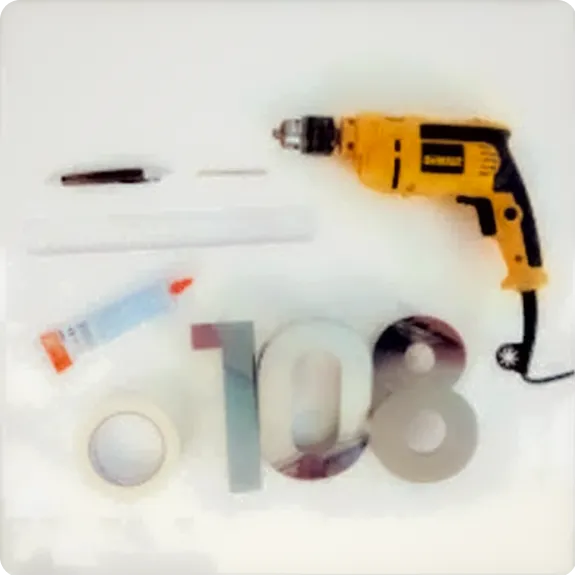 Separe os materiais necessários para a instalação: Furadeira, Broca de 6mm, Caneta ou Lápis, Régua, Fita Crepe e Bisnaga Pequena de Silicone que pode ser encontrada em qualquer loja de materiais para construção.