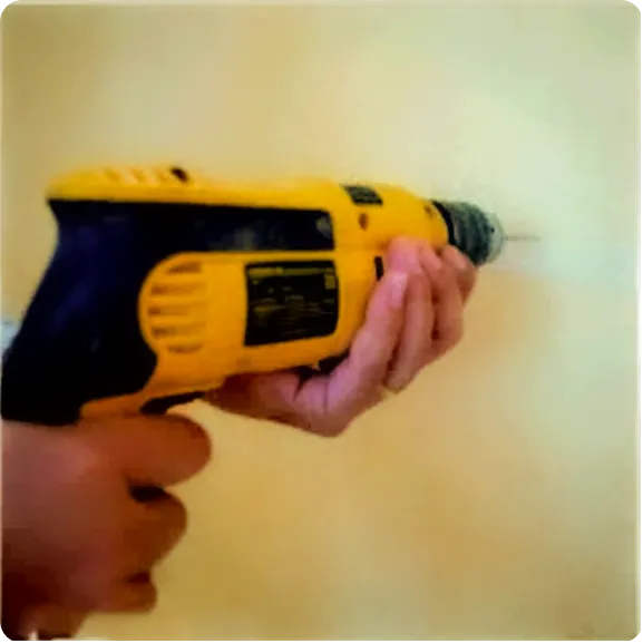 Fure exatamente nas posições marcadas em profundidade suficiente para o encaixe dos chumbadores (arames). Tome cuidado para não aumentar muito o diâmetro dos furos.