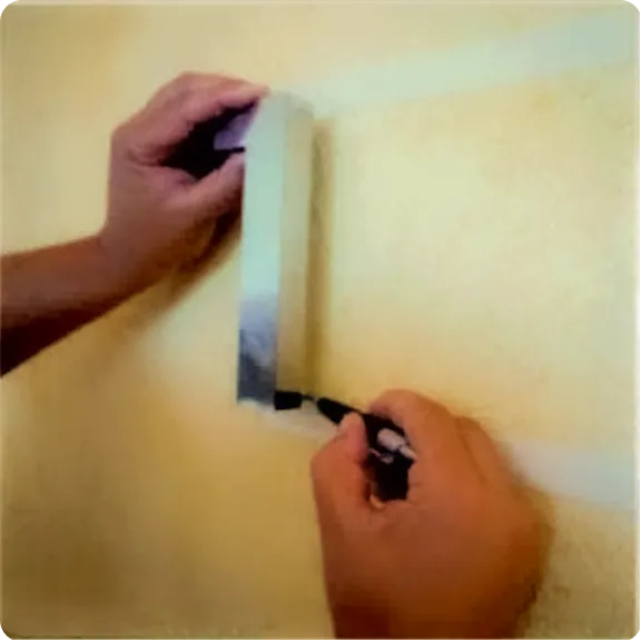 Defina a altura da instalação, cole a fita da parte de baixo do número em sentido horizontal na parede. Deixe a distância correspondente ao tamanho do número entre a fita de baixo e a de cima (opcional). As fitas serão utilizadas para o alinhamento dos números. Somente com a de baixo, já é possível alinhar.